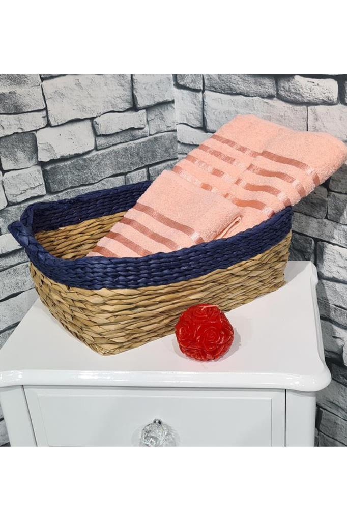 Einfarbiges Jacquard-Handtuch-Set, 2-teilig, 100 % Baumwolle, Badetuch 70 x 140, Handtuch 50 x 90 Lachsfarben