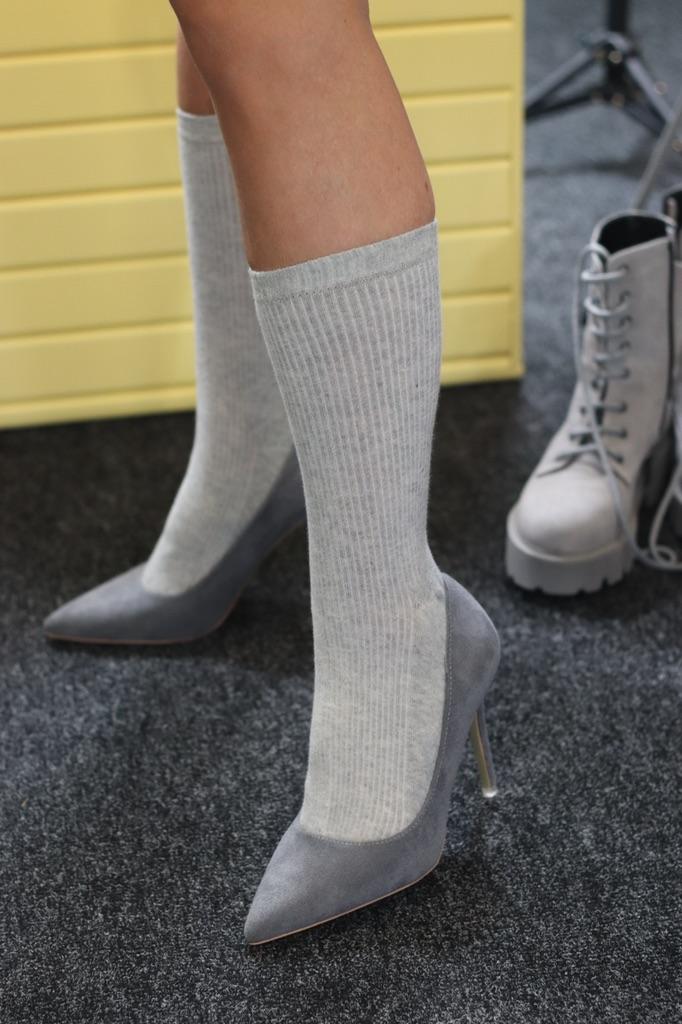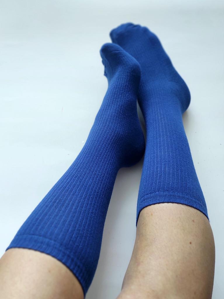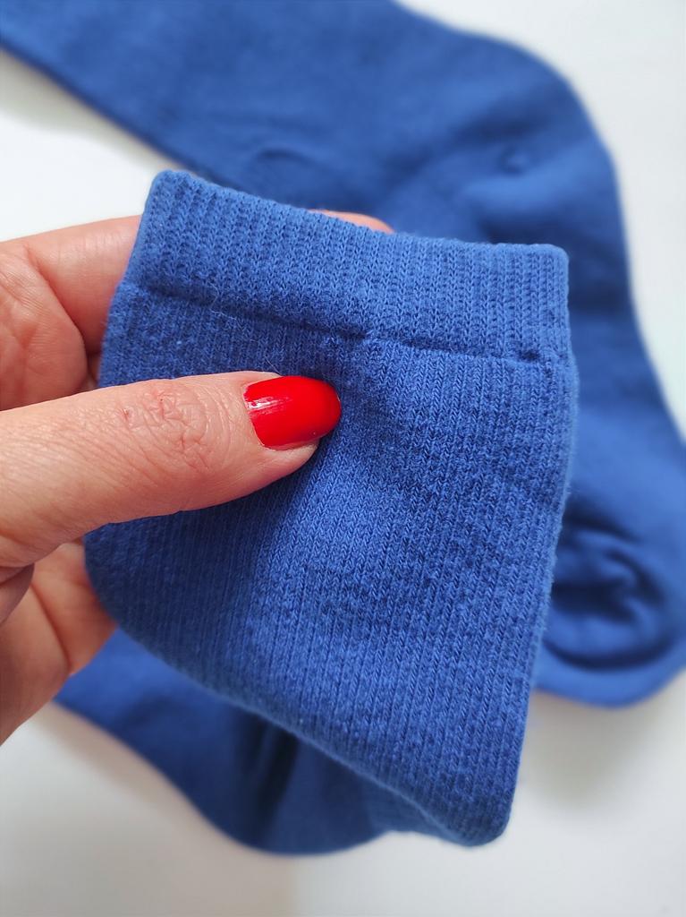 Normale Socken mit Naht im Zehenbereich, ich habe grüne unter die Hose genommen, die Farbe passte perfekt