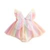 Kleinkind Mädchen Strampler Kleid Stickerei Schmetterling Flügel Fly Hülse Regenbogen Farbe Tüll Rock Saum Overalls Kleidung Baby Bodys