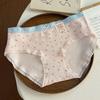 Bedruckte Damenunterwäsche aus Baumwolle, atmungsaktiv und niedlich, mittlere Taille, Spitze, kantenloser Slip