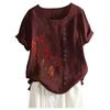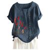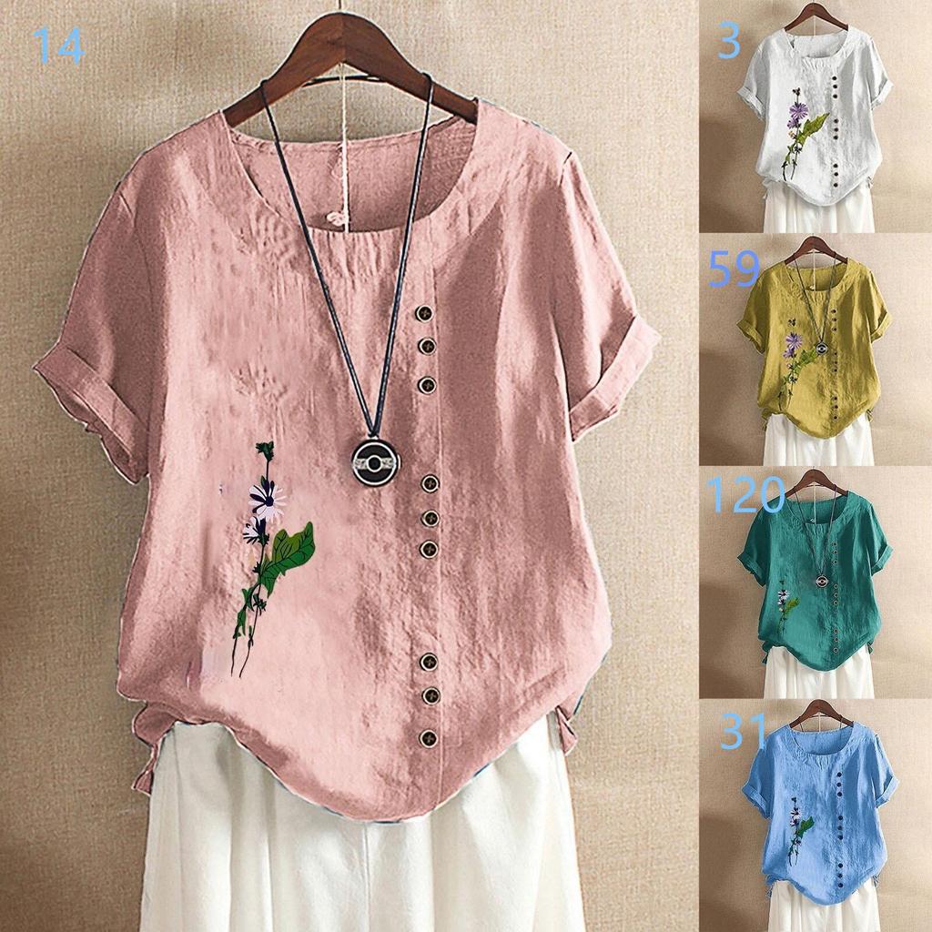 Frühling Herbst Tasten Große Größe Bluse frauen Tops Lose Rundhals Kurzarm Blumen Druck Shirts