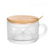 Vintage-Kaffeetassen, Overnight-Oats-Behälter mit Löffeln, klare, geprägte Glasbecher, ideal für Cappuccino, Tee, Latte, Küchenutensilien