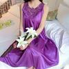 Damen-Nachthemden in reiner Farbe, sexy, aus Eisseide, Satin, locker, lässig, ärmellos, Nachtwäsche, langes Kleid