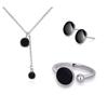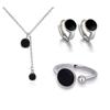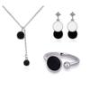 925 Sterling Silber Einfache Epoxy Schwarz Runde Wafer Halskette + Ohrringe + Ring Für Frauen Schmuck Sets Koreanische Schmuck