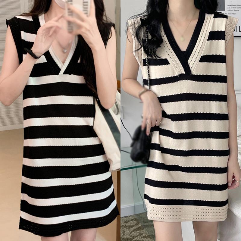 Merkmale: Sommer, weiblich, Vintage, Kleid, Temperament, Streifen, Weste, ärmellos, Strickrock