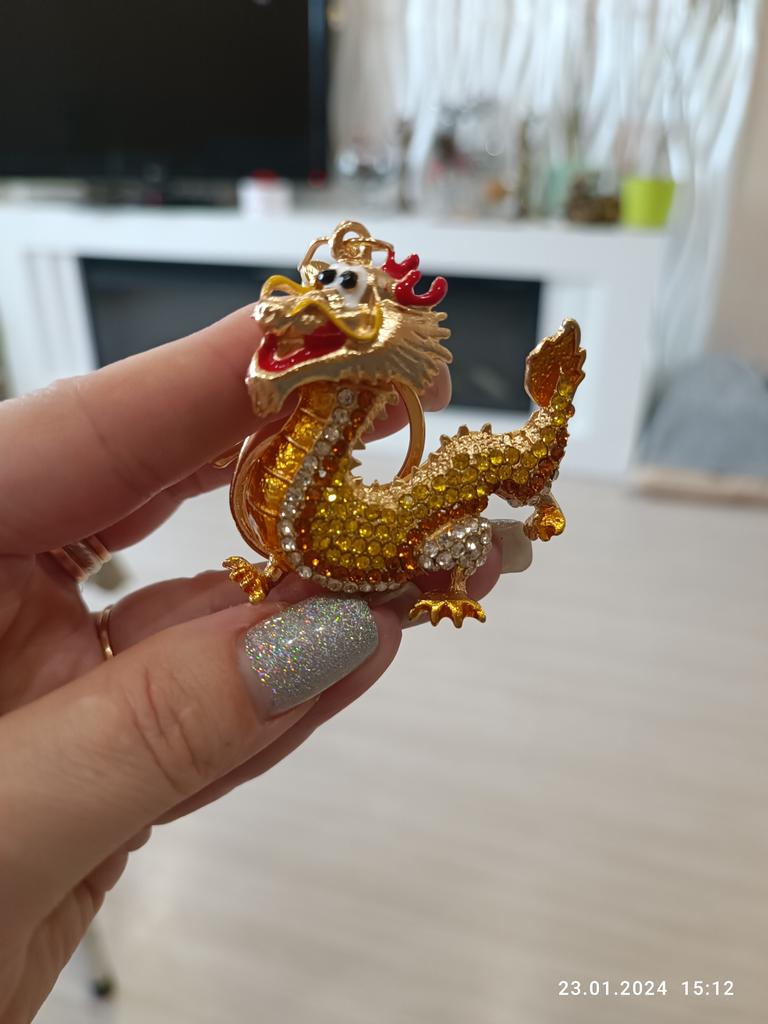 Zinklegierungs-Drachen-Schlüsselanhänger mit Strass-Inlay, hübscher glücklicher chinesischer Drache zum Aufhängen, Ornament, 3D-Cartoon, 2024, Jahr des Drachen-Anhängers, Geburtstag