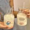 Niedliche koreanische Bären-Glastasse mit Deckel und Strohhalm für Kaffee, Milch, Tee, klare Kawaii-Mini-kreative Saft-Wasser-Tassen für Mädchenliebhaber