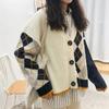 Damen-Cardigan-Pullover mit Diamant-Oberteil in Kontrastfarbe und lockerer Strickjacke