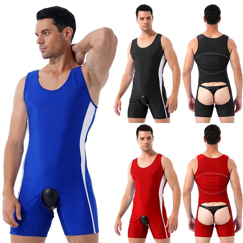 Jockstrap-Unterwäsche für Herren, einteiliger rückenfreier Trikotanzug, ärmellos, hoch geschnitten, Wrestling-Singlet-Shorts