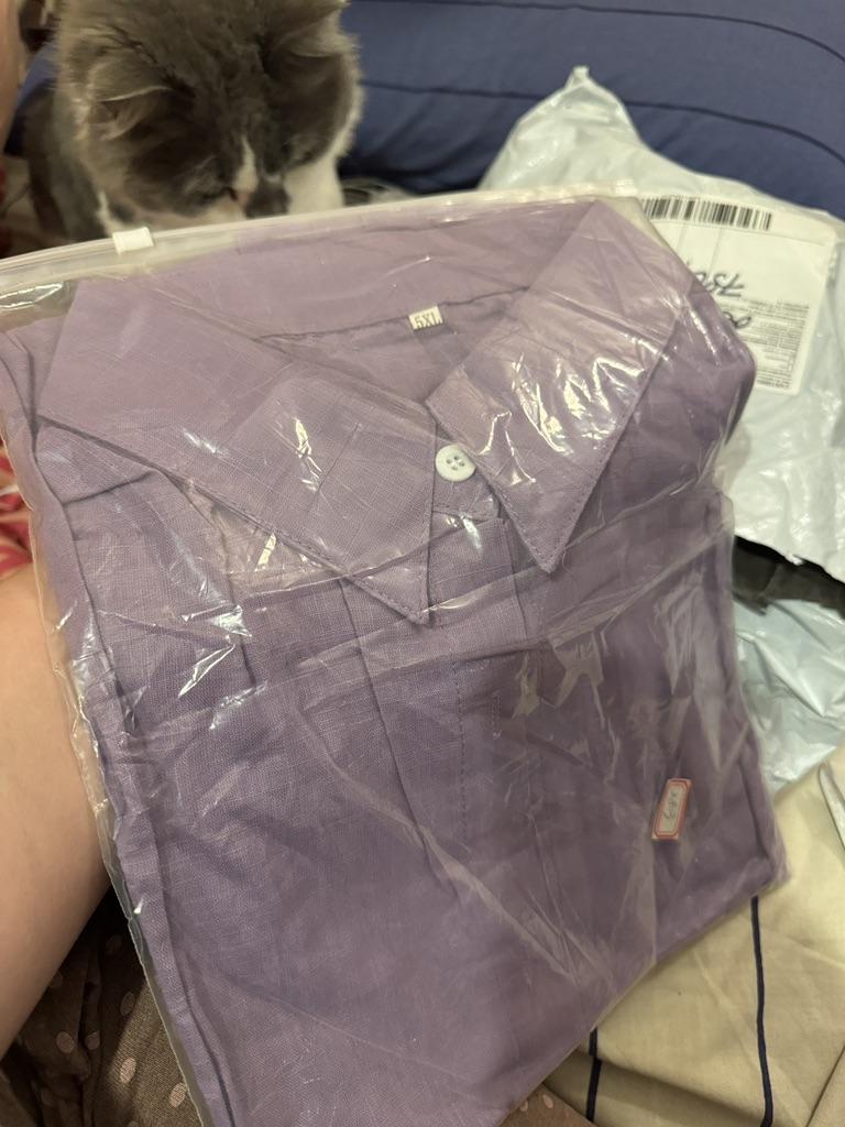 Für meine Größe 52 ist sie etwas groß, aber das Hemd ist ordentlich genäht, das Material ist ausgezeichnete Baumwolle Leinen, ich habe es an den Seiten enger genäht und trage es gerne, es gefällt mir sehr