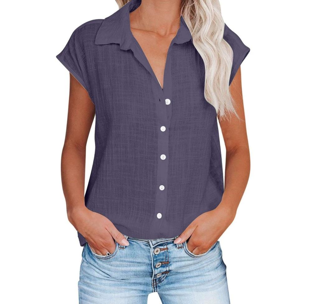 Sommer Einfarbig Einreiher Hemd frauen Casual Revers Kurzarm Bluse Top