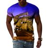 Sommer Segelboot Auf Meer Grafik T Shirts Männer Mode Lässig Persönlichkeit 3D Gedruckt Rundhals Kurzarm Streetwear T-shirts Tops