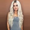Natürliche lange gewellte Damen-Synthetikperücken mit dunklen Wurzeln, Ombre-Blondbraun, hitzebeständiges Haar für Frauen, tägliche Party, Cosplay