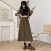 Mode Hohe Taille Cordröcke Damen Koreanisch Elegant College Stil Midirock Damen Herbst Winter Dick A-Linien-Rock