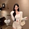 Pullover Herbst und Winter Quadratischer Hals Hängender Hals Nerz Plüsch Pullover Frauen Herbst und Winter Kurzer Strickpullover Weibliches Top