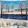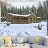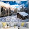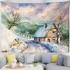 Weihnachten Ölgemälde Psychedelic Wald Schnee Szene Kleine Haus Wand Hängen Nette Schneemann Hause Tapisserie