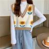 Retro Kontrast Gestrickte Weste Pullover Sonnenblumen Top Stricken Frauen Herbst Weste Stricken V-ausschnitt Ärmellose Pullover Pullover Weste Weibliche