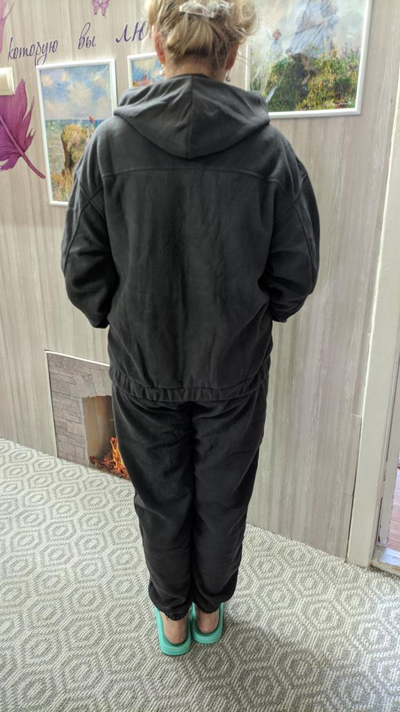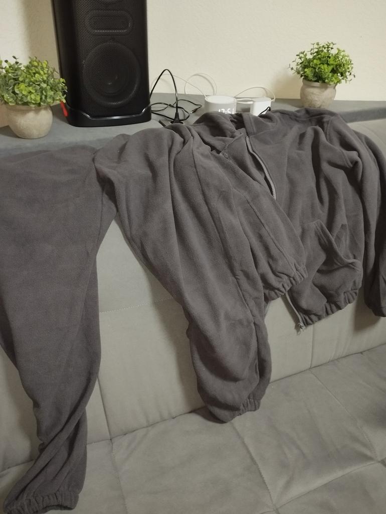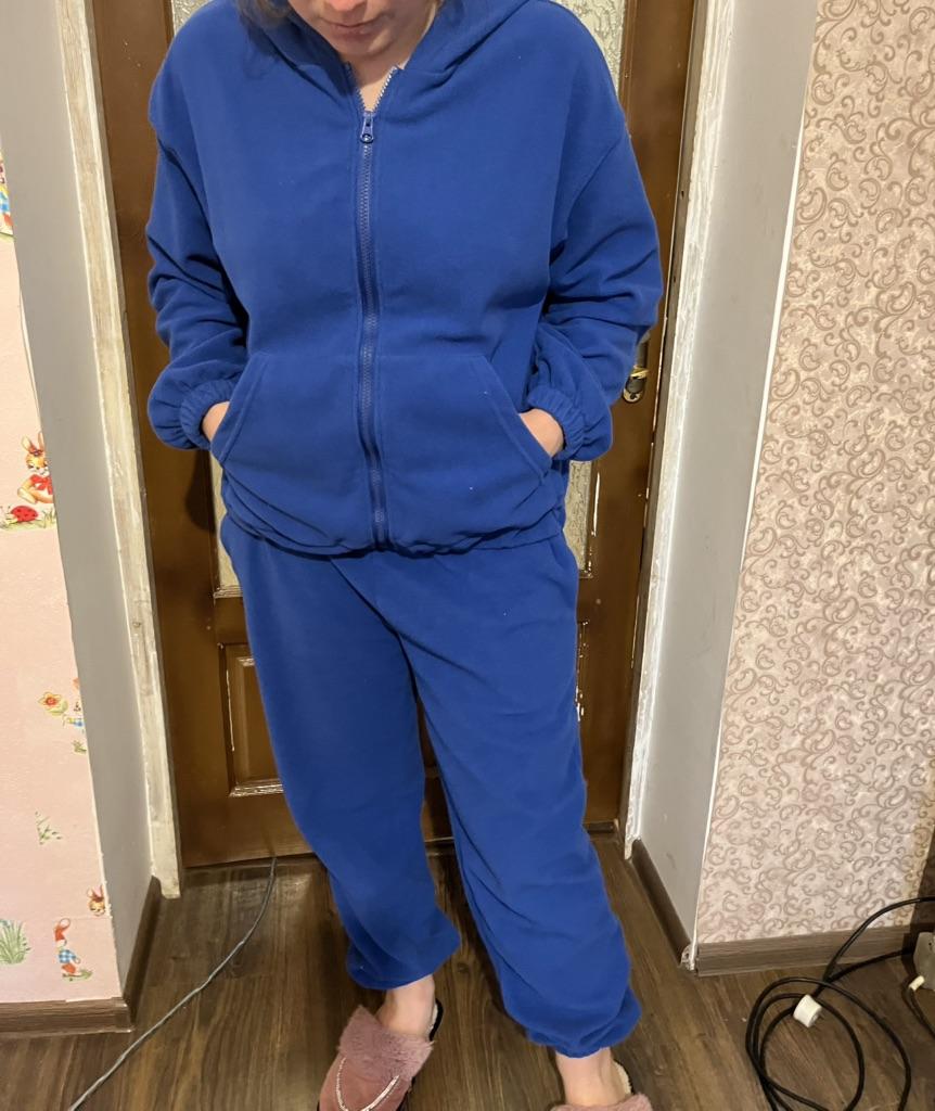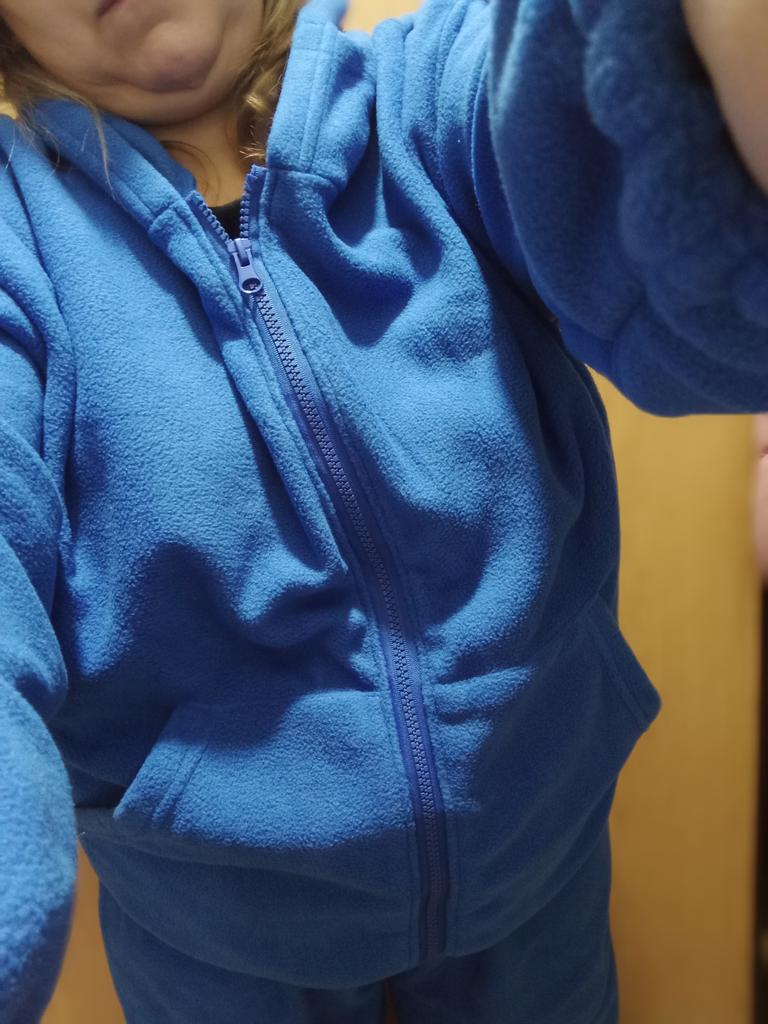 Fleece ist von sehr schlechter Qualität. Eher wie gepresste, zerknitterte Watte. Die Farbe stimmt nicht mit der Farbe auf dem Foto überein. Viel heller und heller. Ich füge ein Foto bei. Außerdem sieht das Modell nicht wie auf dem Foto aus. Auf dem Foto ist das Oberteil locker und die Hose sitzt auf der Hüfte. Tatsächlich ist das Gegenteil der Fall. Die Hose sitzt wie ein Sack, das Oberteil könnte lockerer sein. Bitte veranlassen Sie eine Rückerstattung