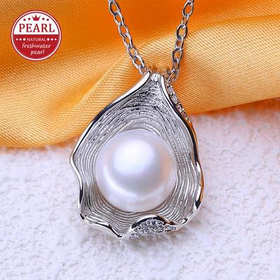 LSOOYH Natürliche Süßwasser Große Barocke Perle Anhänger Klassische Silber Farbe Blume Anhänger Halsketten Für Frauen Mädchen Geburtstag Geschenk