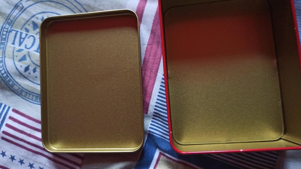 Trotz sehr guter Verpackung gibt es eine kleine Delle im Deckel, sehr dünnes Blech, die Farbbrillanz ist deutlich matter als auf dem Bild