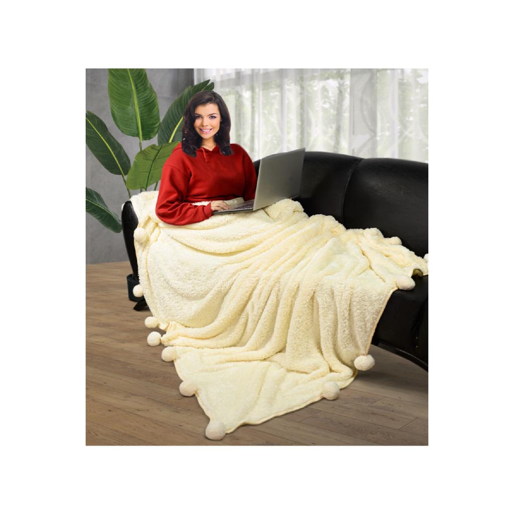 200 x 220 cm große Plüsch-TV-Decke mit Pompon (100 % lokal)