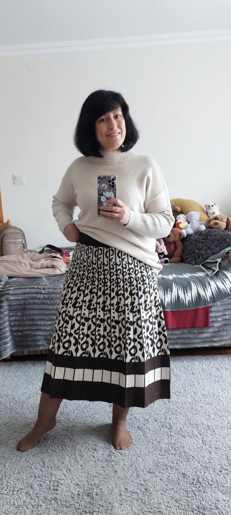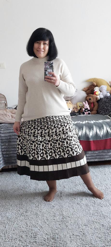 Der Rock ist von sehr guter Qualität. Die Strickware ist so beschaffen, dass keine Windungen entstehen. Es ist weder Bügeln noch Dämpfen notwendig, es knittert nicht. Das Produkt hat mir sehr gut gefallen, ich mag gestrickte Sachen sehr und vor allem so praktische. Ich empfehle