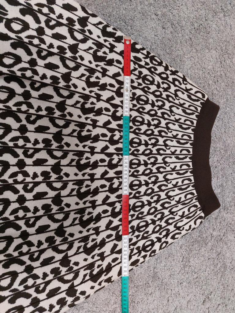 Gestrickte Lange Röcke Frauen Herbst Winter Mode Leopard Gedruckt A Linie Hohe Taille Plissee Midi Rock
