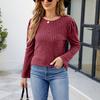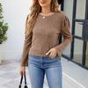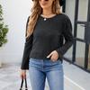 Damen-T-Shirt mit rundem Halsausschnitt, Puffärmeln, einfarbigem Oberteil und langen Ärmeln