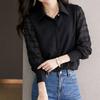 Casual Lose Langarm Chiffon Spitze Frauen Shirts Schwarz Frauen Blusen Französisch Frau Tops Drehen Unten Kragen Kleidung 29507