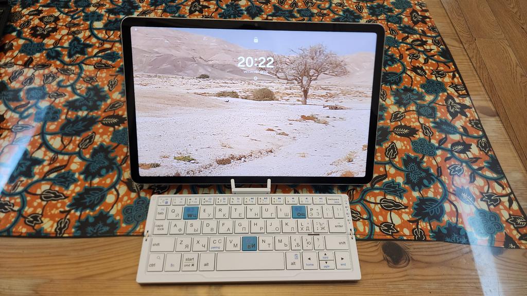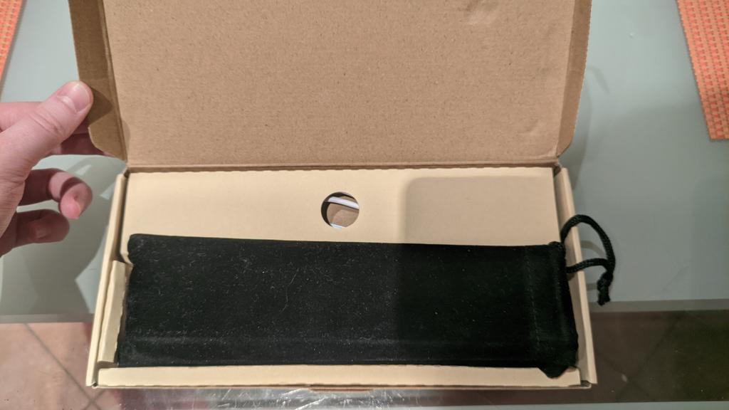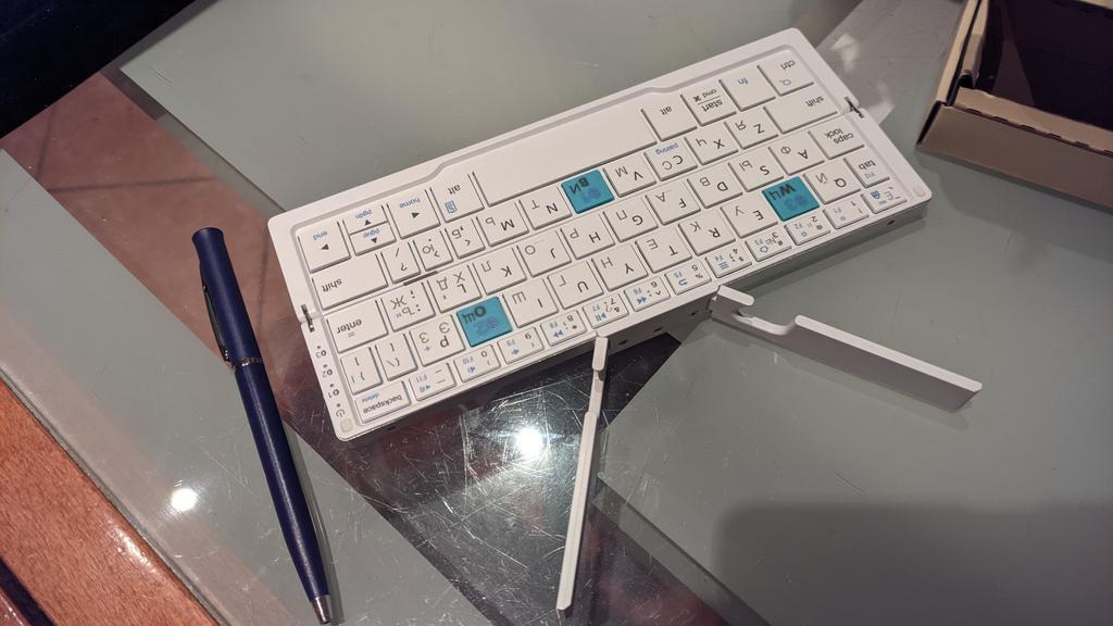 Es kam etwas früher als geplant an. In tollem Zustand. Aus Metall gemacht. Wiegt wie ein Telefon. Wird durch Magnete gehalten. Da die Platten nur mit einem Klebeband zusammengehalten werden, wackelt es beim Zusammenbau leicht. Wird über Bluetooth problemlos geortet. Es macht Freude zu tippen. Tolle Taschenoption