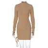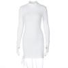 Langarm Rippen Geraffte Bandage Sexy Mini Kleid Herbst Winter Frauen High Neck Gestrickte Reine Party Elegante Outfits