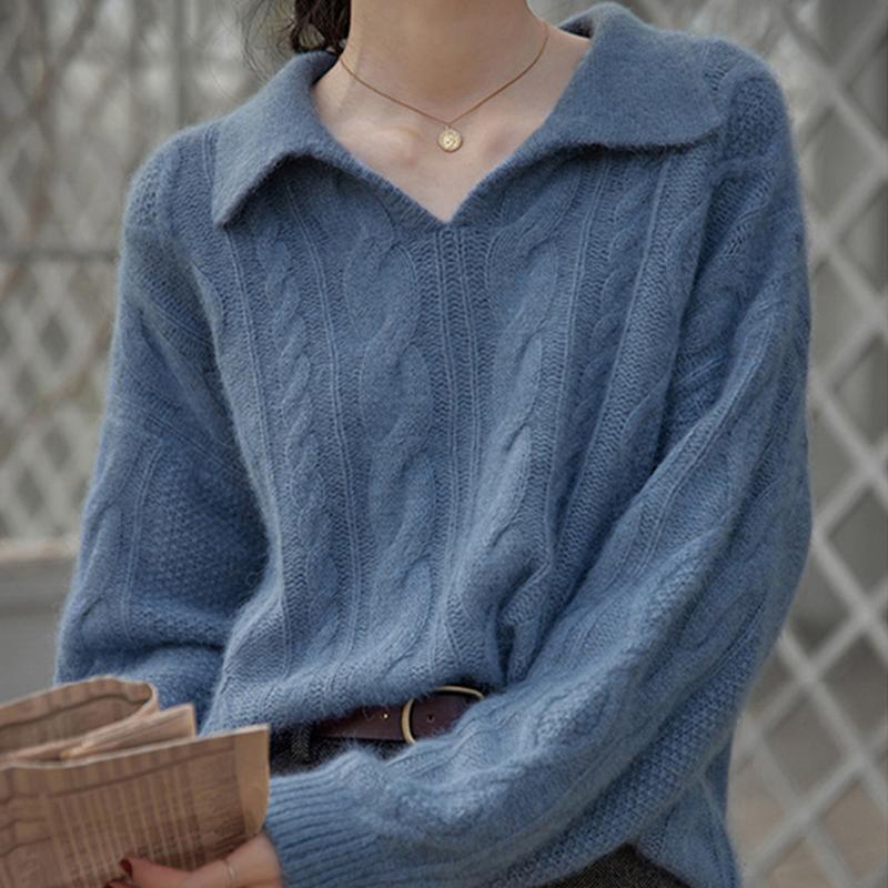 Reverspullover für Damen, locker gestrickt, einfarbig