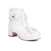 Damen-Lolita-Stiefeletten, runder Zehenbereich, Block-Mitte-Absätze, Kawaii-Schnürung, Schleife, kurze Stiefel, Damen-Cosplay-Schuhe, Herbst-Winter, 46