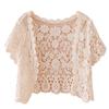 Kurze Ärmel, offene Vorderseite, transparentes Blumenmuster, Quasten, Saum, .