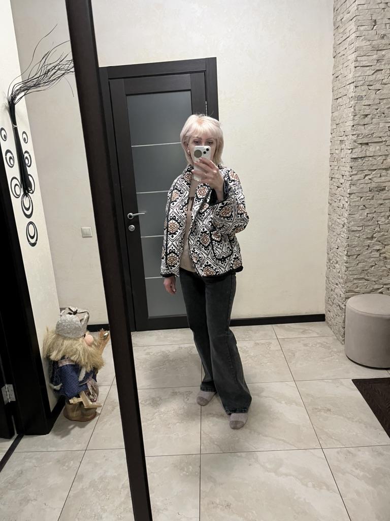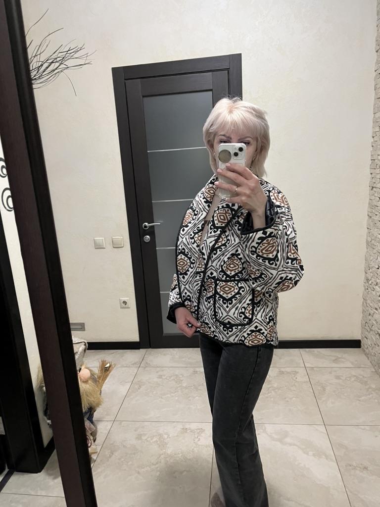 Die Jacke sieht toll aus, genau wie auf dem Foto. Passt zu meiner 44. Aber es passt sowohl für 42 als auch für 48. Ordentlich genäht.