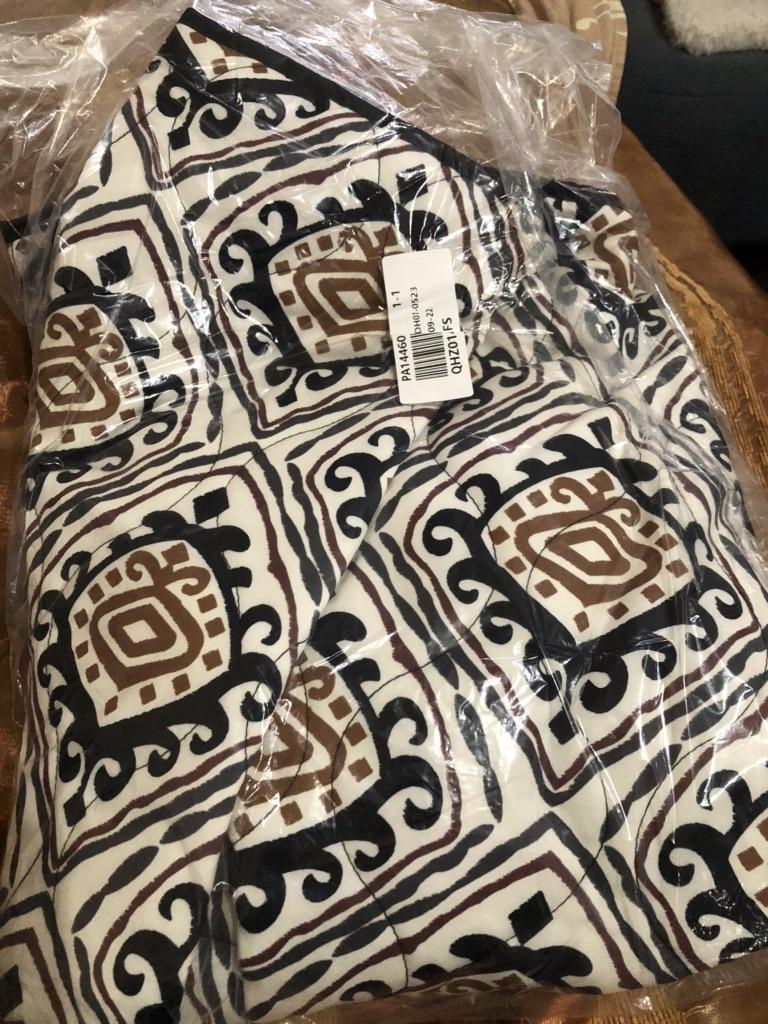 Süßes Matratzenmuster, schöne Jacke ohne Knöpfe und Reißverschluss. Ich habe für alle Fälle Befestigungselemente bestellt, meine Güte.