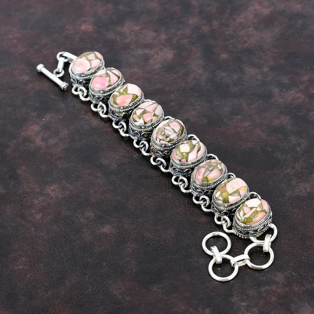 Kupfer Rosa Opal Armband Handgemacht Vintage Schmuck 925 Sterling Silber Armband Edelstein Armband Verstellbares Kettenarmband Geschenk für Braut