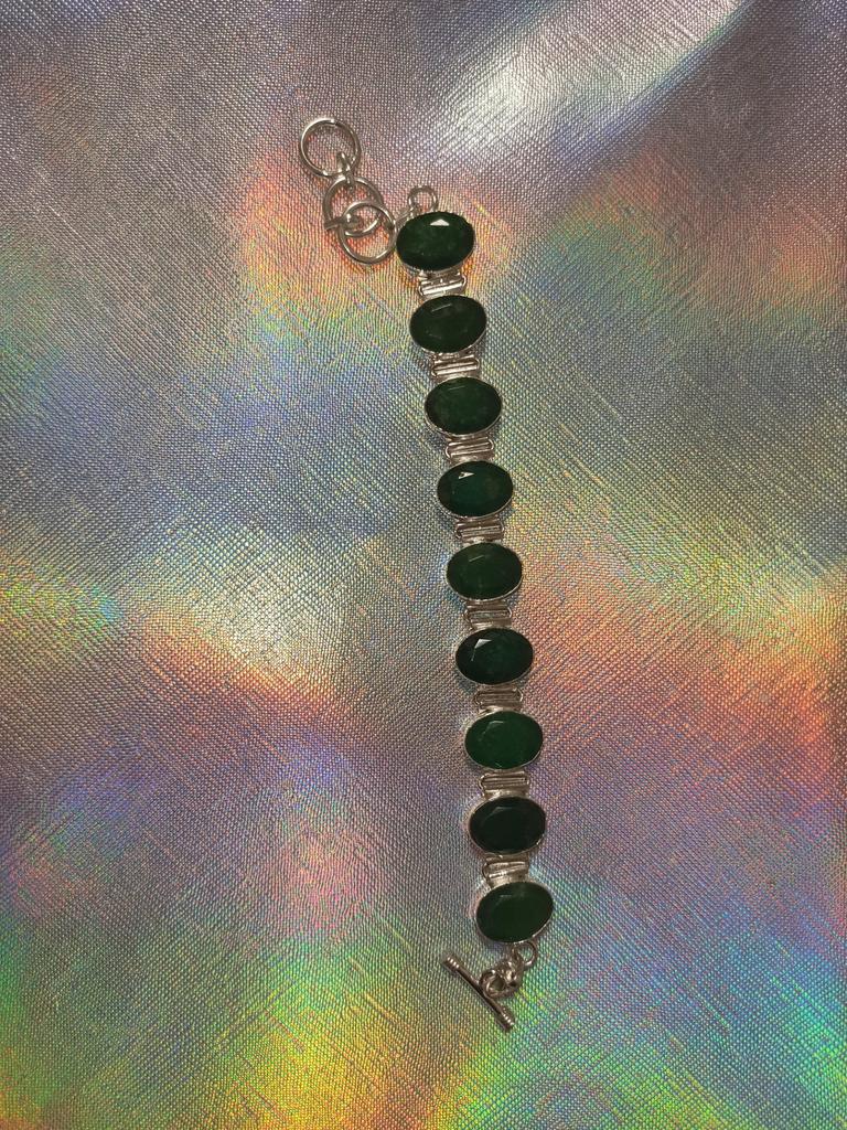 Facettiertes sambisches Smaragd-Armband, sehr hübscher Edelstein, handgefertigter Schmuck, 925er Sterlingsilber-Armband, verstellbares Kettenarmband, Geschenk für Frauen