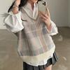 Ärmellose Weste Weste kariert übergroß Frühling Herbst Damen Pullover Pullover Strickwaren Tops