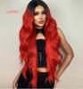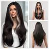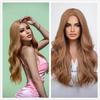 ALAN EATON Lange gewellte braune synthetische Perücken, Highlight-Pink-Perücken für Frauen, Cosplay-Perücken, hitzebeständige Perücken