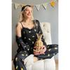 Dunkelschwarz gemustertes Pegasus-Pyjama-Set mit Morgenmantel