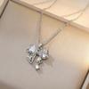 Halskette mit Bogen-Vollzirkonium-Anhänger, weibliche koreanische Version der Ins-All-Match-Edelstahl-Halskette