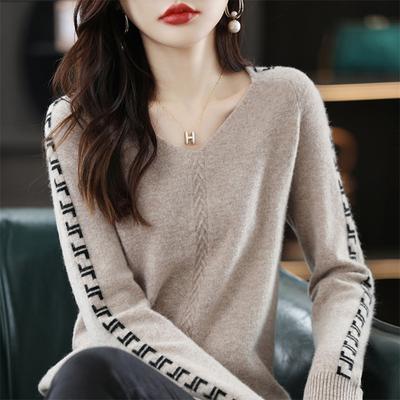 Pullover V-Ausschnitt Wollpullover Damen farblich passender Strickboden Herbst/Winter Kaschmir V-Ausschnitt Pullover für Damen