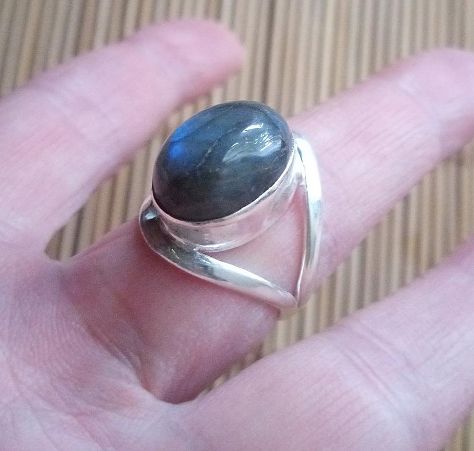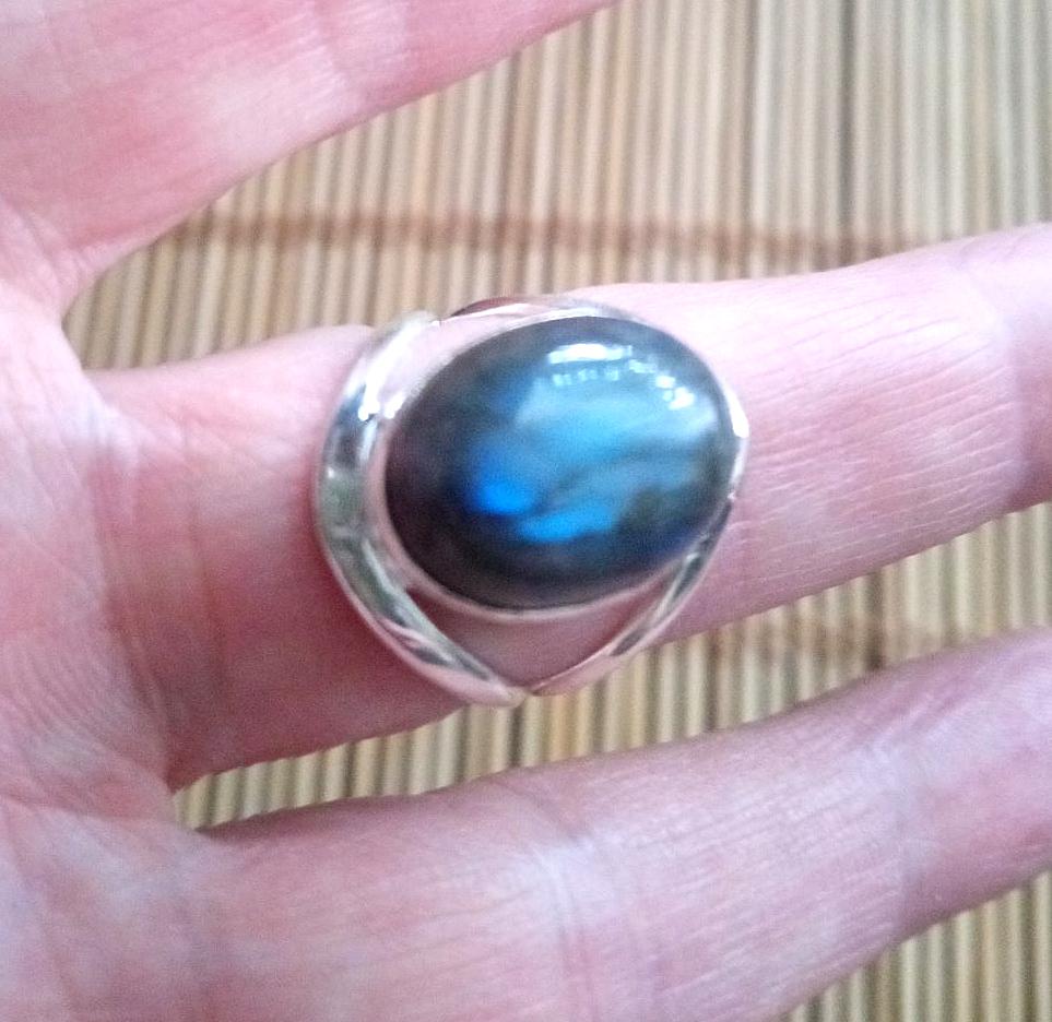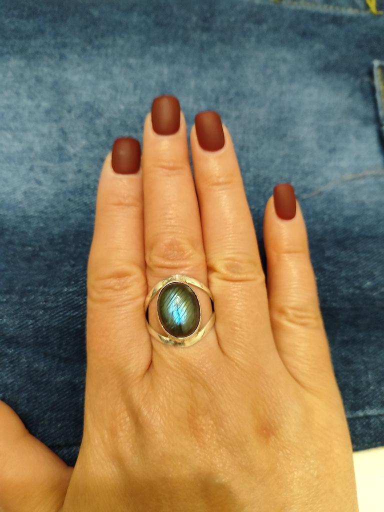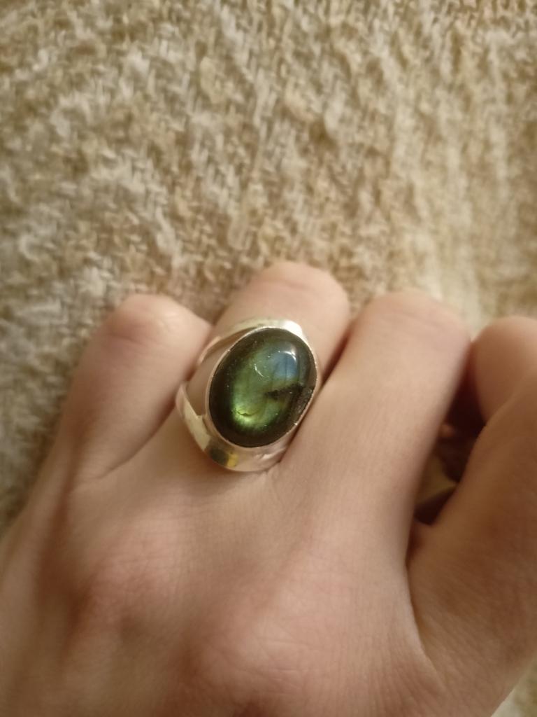 Ein wunderschöner Ring mit Labradorit. Die Größe stimmt.