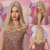 ALAN EATON Blonde Perücke mit langem lockigem Haar, Mittelscheitel, Spitzen-Haaransatz, Perücke für weiße Frauen, synthetische, natürliche, goldblonde Alltagsperücke