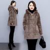 Verdicken Mittellange Kapuze Faux Nerz Pelzmantel Frauen Weiche Warme Plüsch Mantel Flauschige Jacke Winter Gestreiften Lose Oberbekleidung