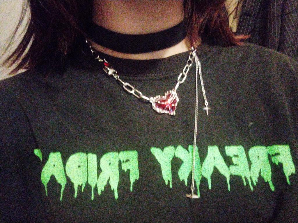 Faitolagi 1 Stück rote Liebesspleiß-Halskette, Stern-Anhänger-Halsketten, Y2K-ästhetische Splitter-Metall-Schlüsselbeinkette für Frauen und Mädchen, Schmuck, Halloween-Geschenk