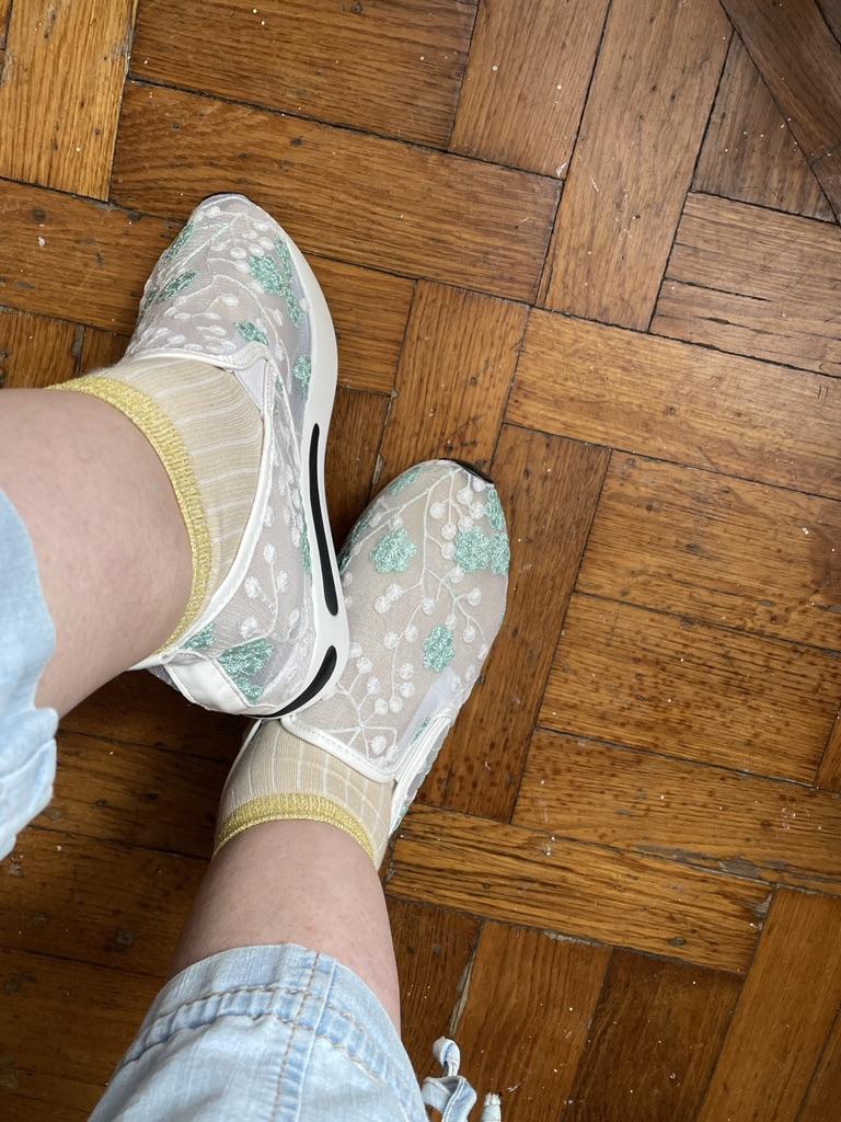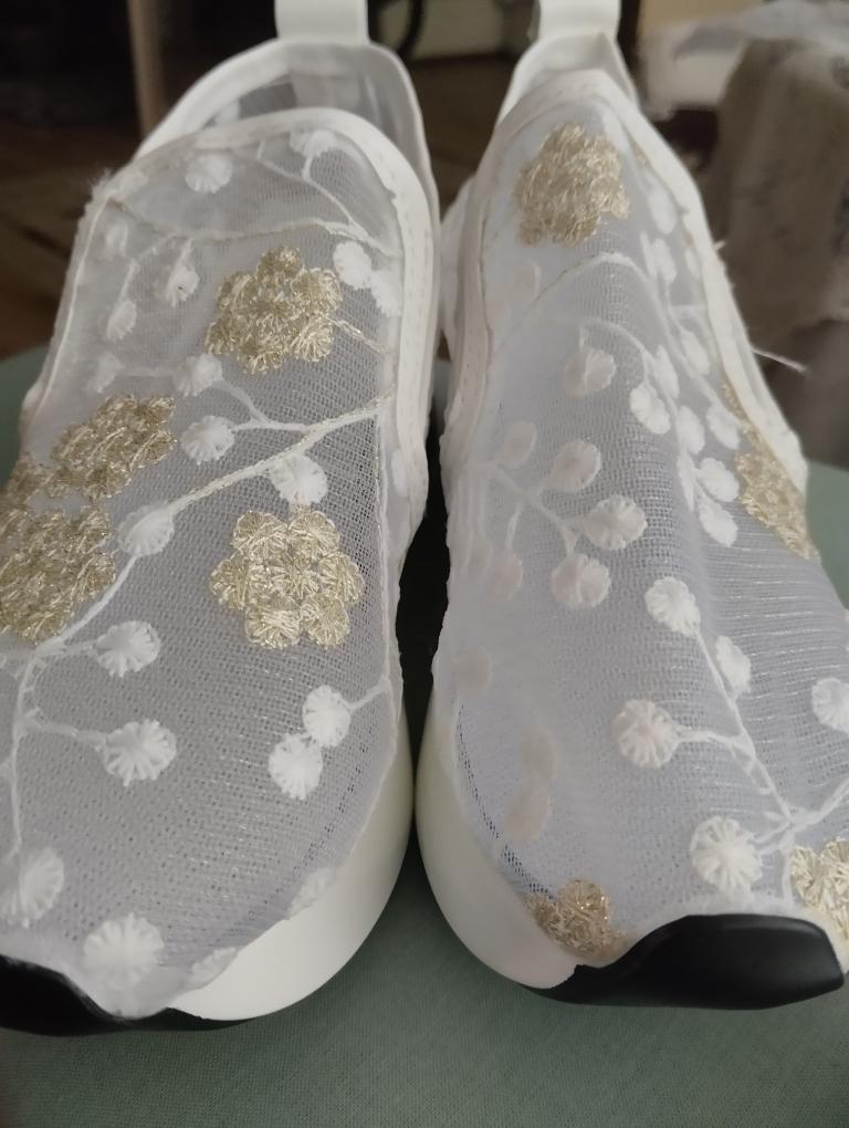 Die Sneaker sind trotz Plateau schick, bequem, schön und leicht am Fuß. Ich empfehle, in sie hineinzusteigen, als ob man fliegen würde.