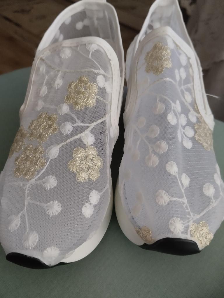 Sie sehen schön und leicht aus, aber beim Gehen fliegen sie von der Ferse, das Gummiband muss schmaler sein, damit die Zunge fest anliegt. Nur zum Ausgehen.... Nicht sehr bequem. Die ersten, die ich bestellt habe, waren 39, sie waren groß, ich musste sie weggeben. Und die zweiten sind 38, aber sehr nah dran, es gibt keinen Mittelweg. Es ist schade. Sie können es nicht erraten, das sind keine Sportschuhe, es ist sehr schwer zu erraten, sie folgen nicht der Größentabelle, sie legen sie einfach in das Paket, damit sie da sind.