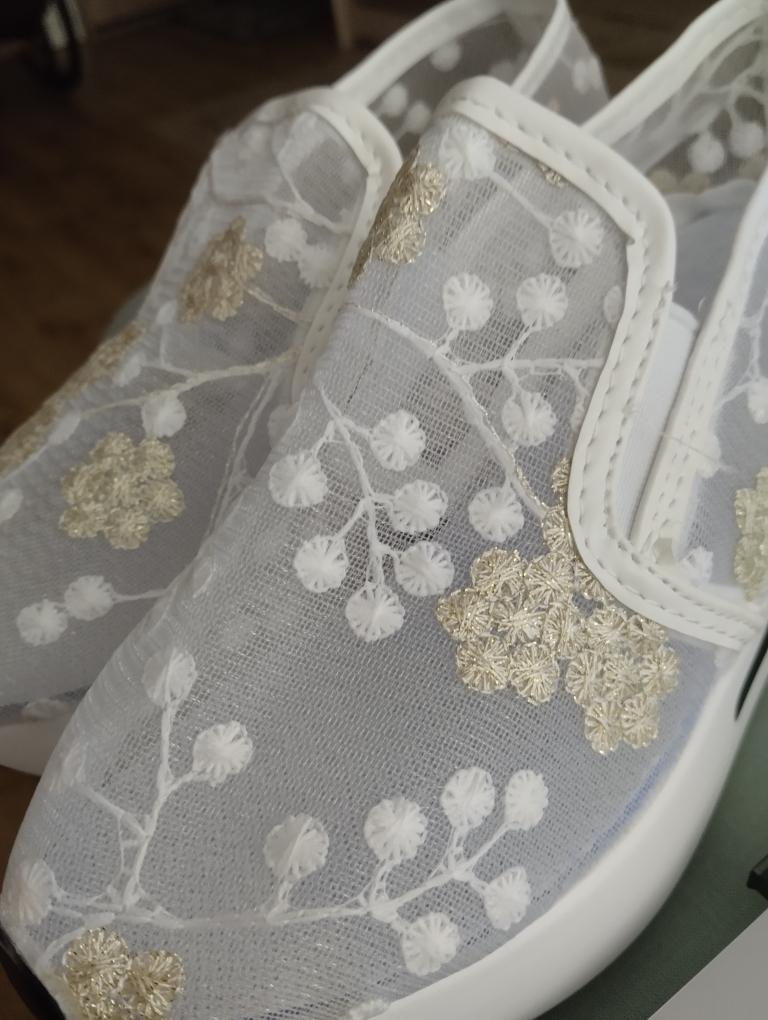 Die Sneaker sind der Hammer, leicht, elegant, gute Plateausohle. Ich habe Größe 38 nach der Tabelle genommen, hatte Angst, dass sie zu klein sein würden, aber sie passen genau 🫂❤️